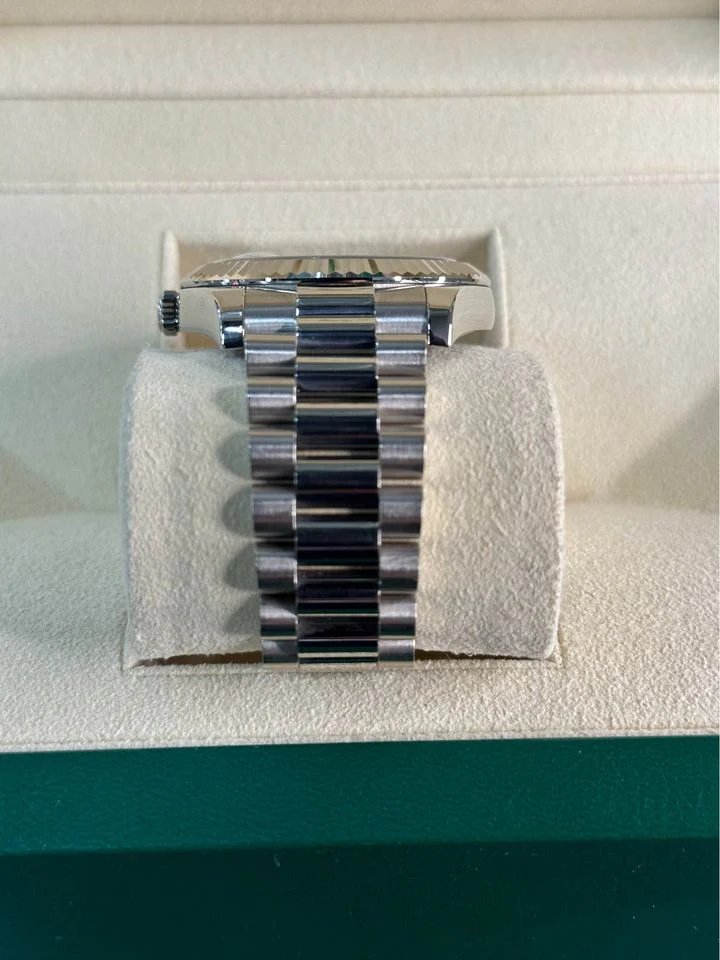 2013 Rolex Day-Date 41mm 218239 White Gold Jubilee Silver Stick Dial