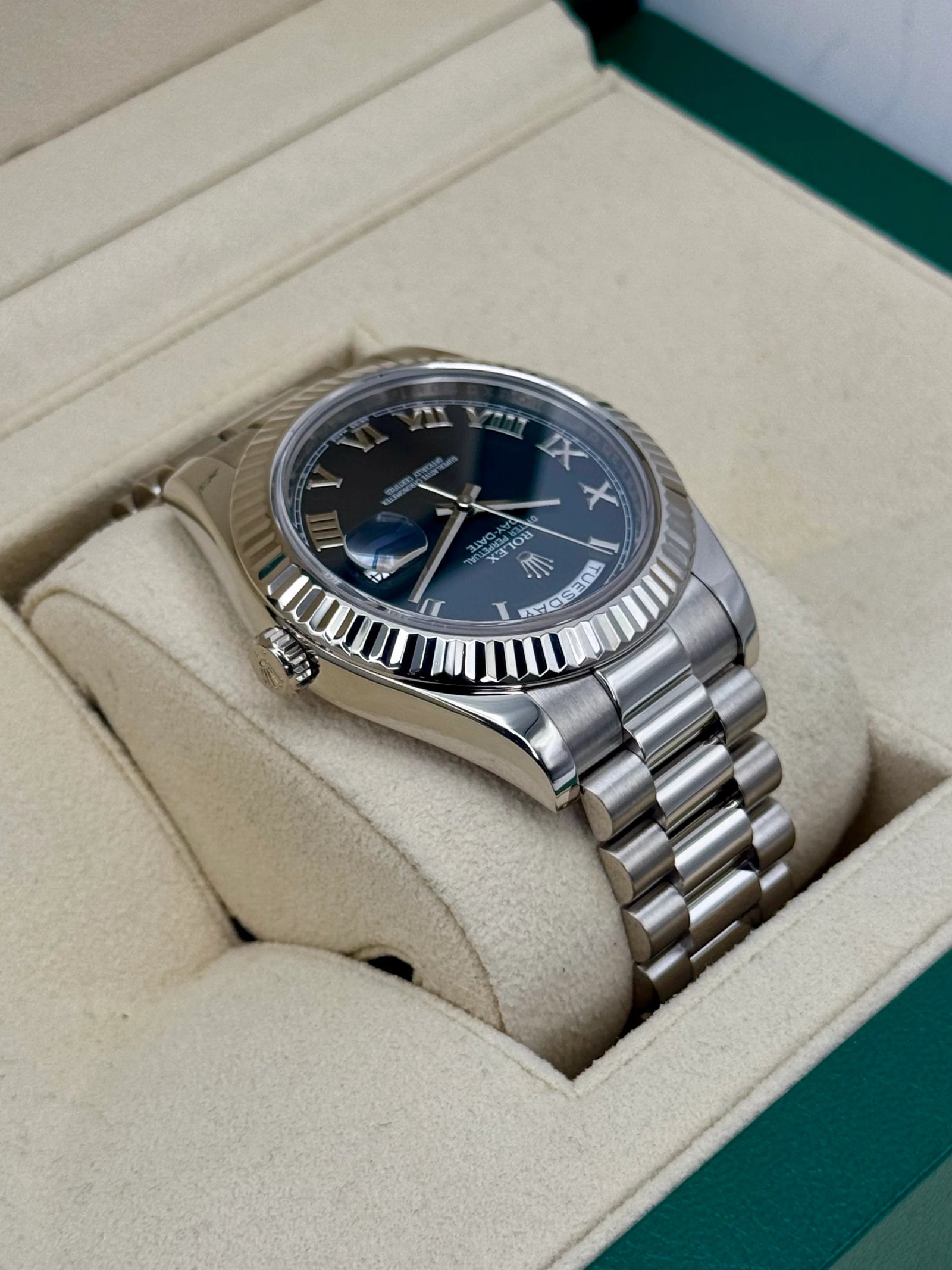 2015 Rolex Day-Date II 41mm 218239 White Gold Presidential Black Dial