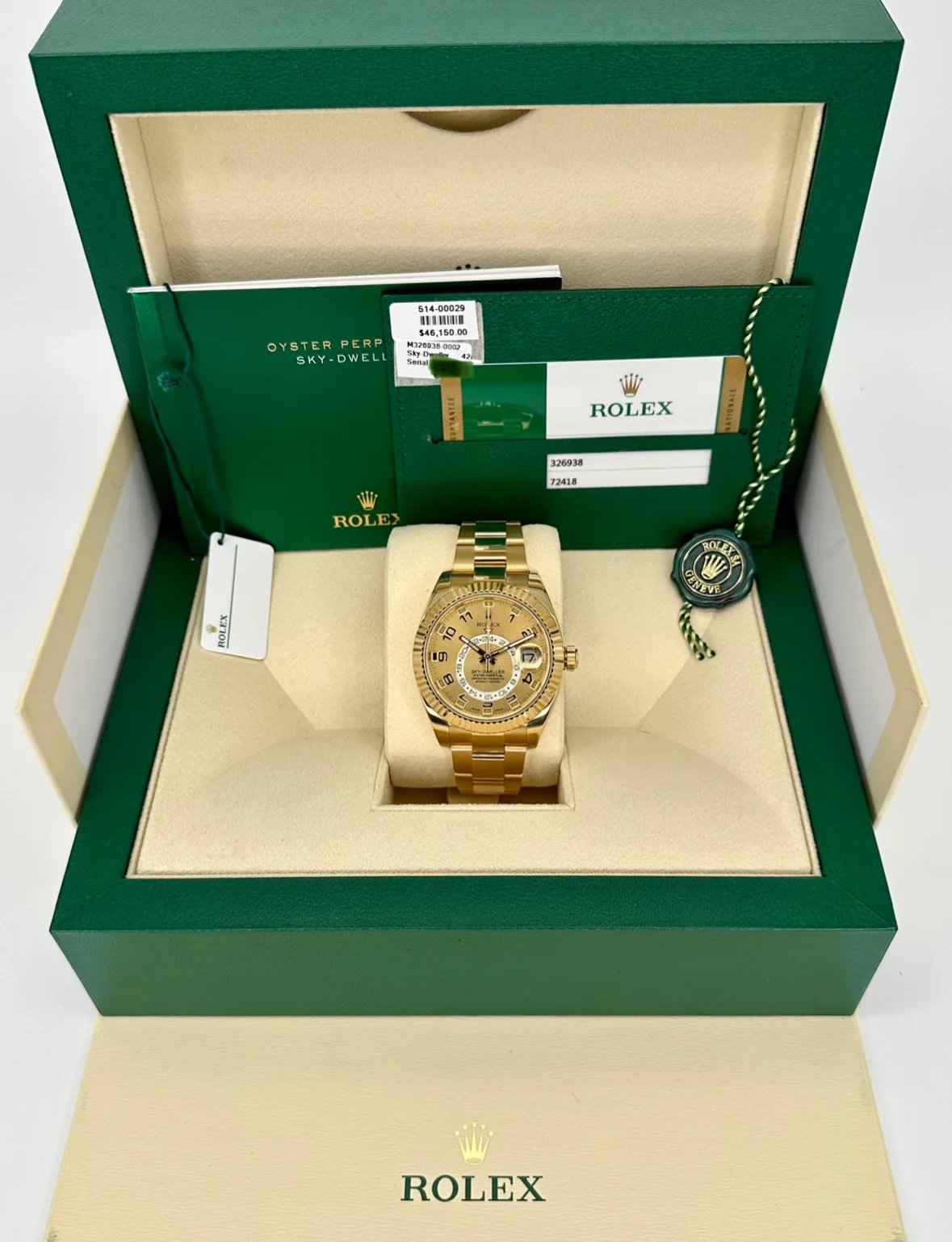 2017 Rolex Sky-Dweller 42mm 326938 Yellow Gold Oyster Champagne Dial