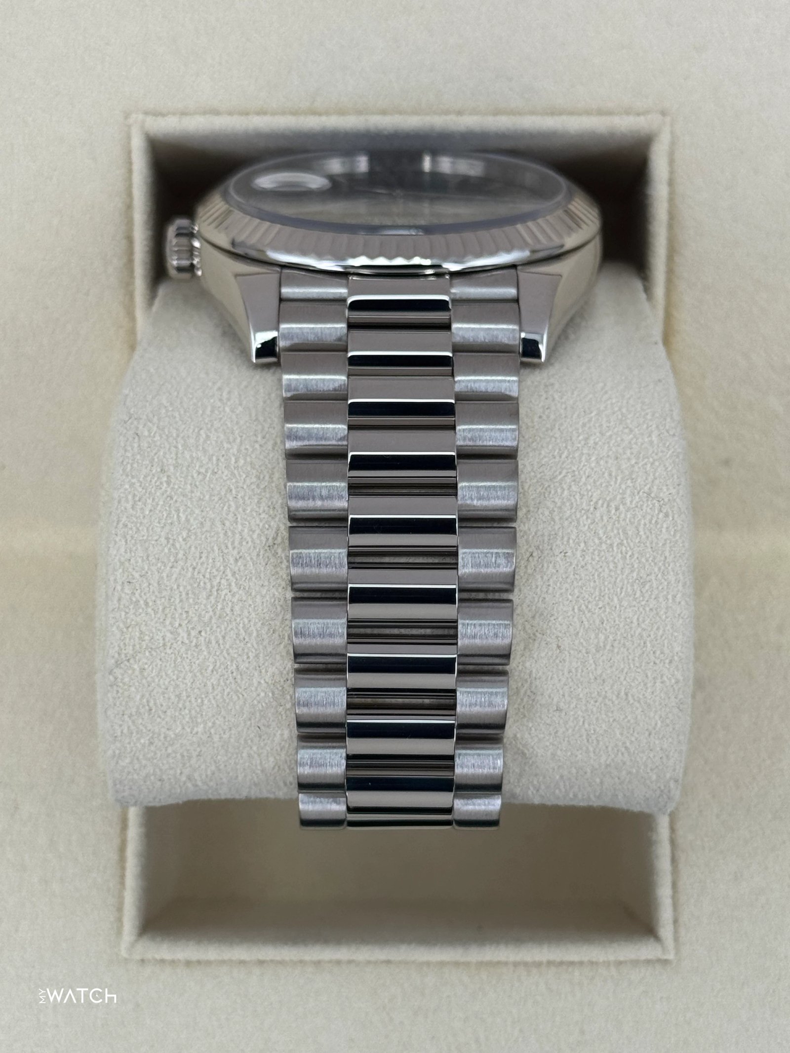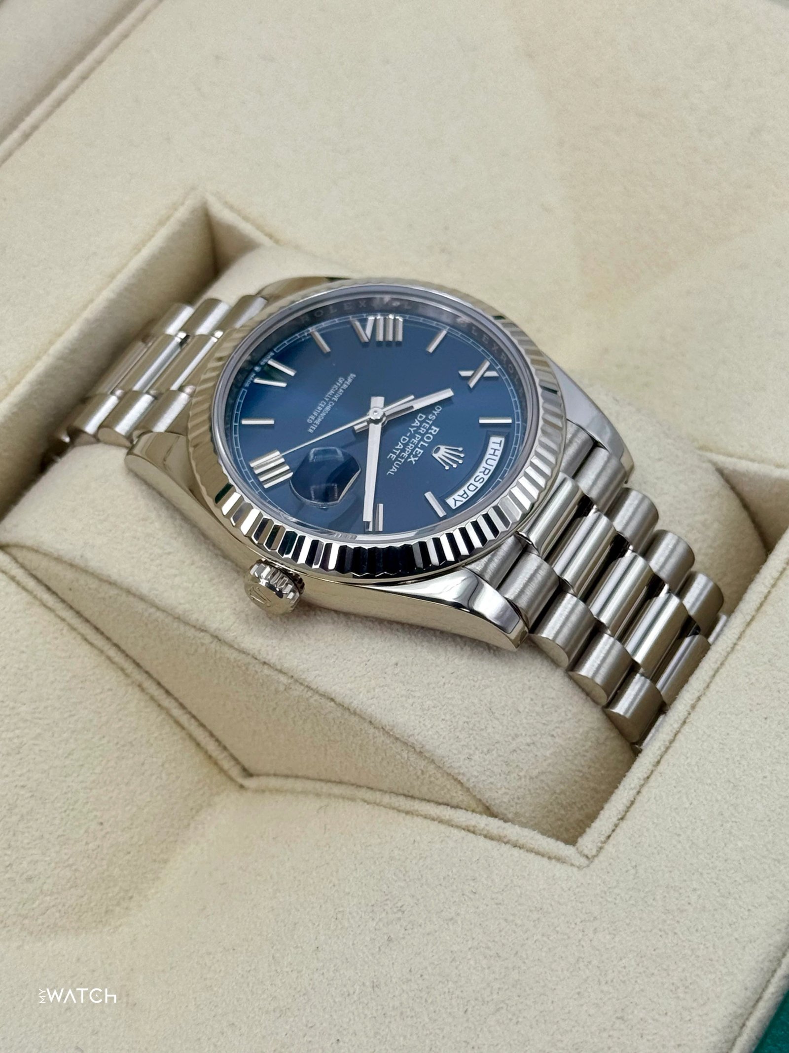 2021 Rolex Day-Date 40mm 228239 White Gold Blue Dial