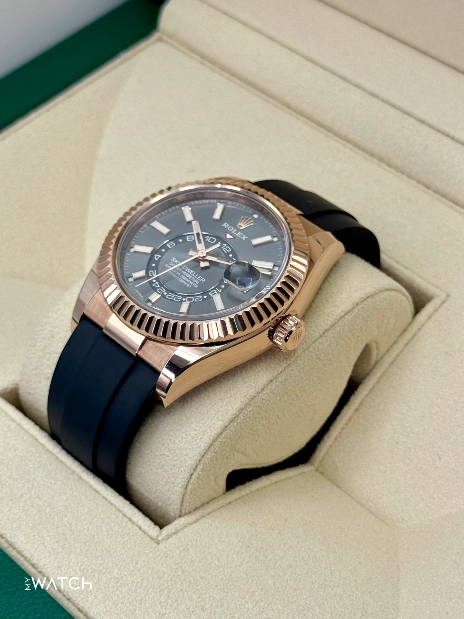 2021 Rolex Sky-Dweller 42mm 326235 Rose Gold Oysterflex Rhodium Dial