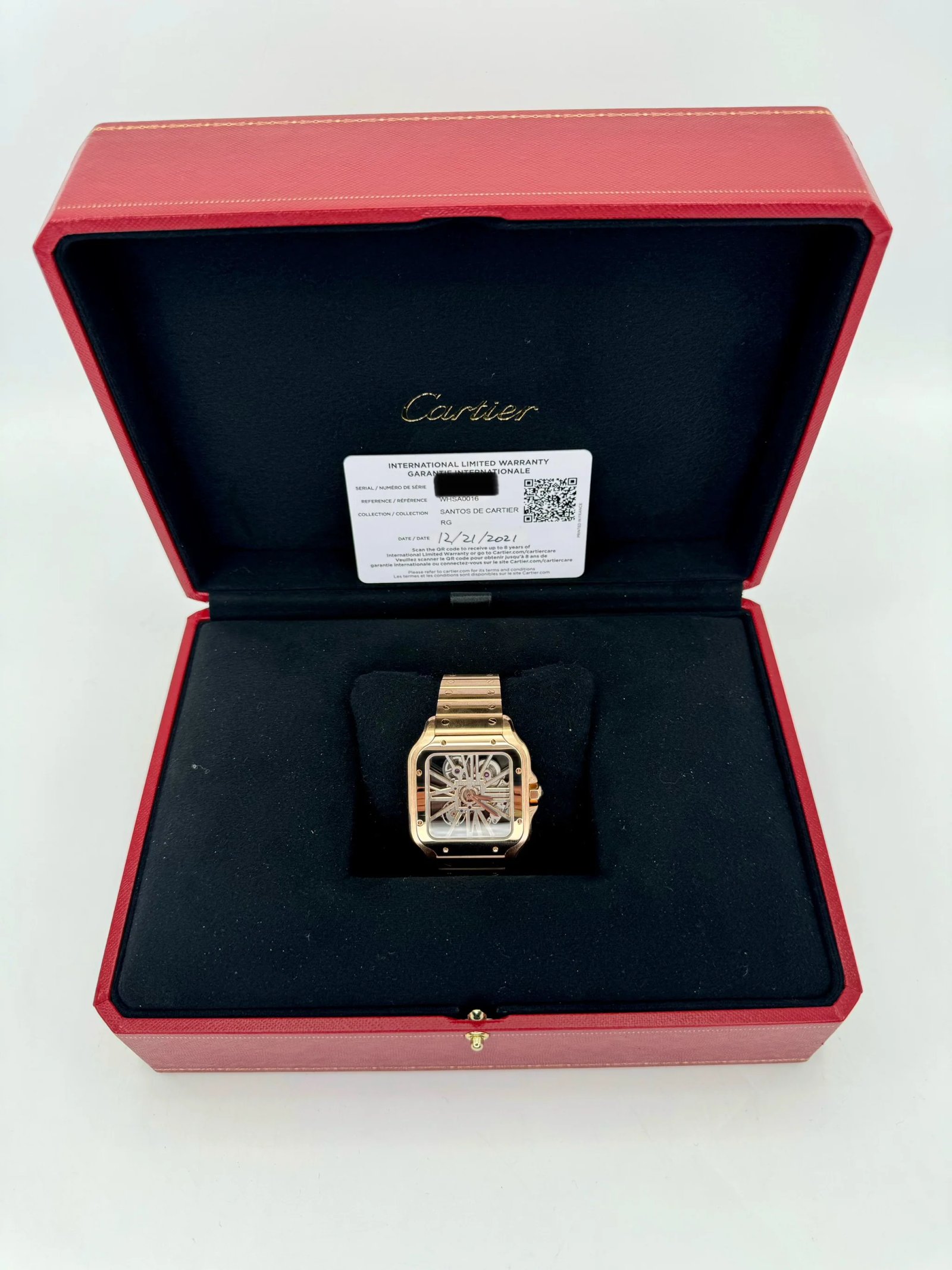 2021 Santos De Cartier 39.8mm WHSA0016 Rose Gold Skeleton Dial
