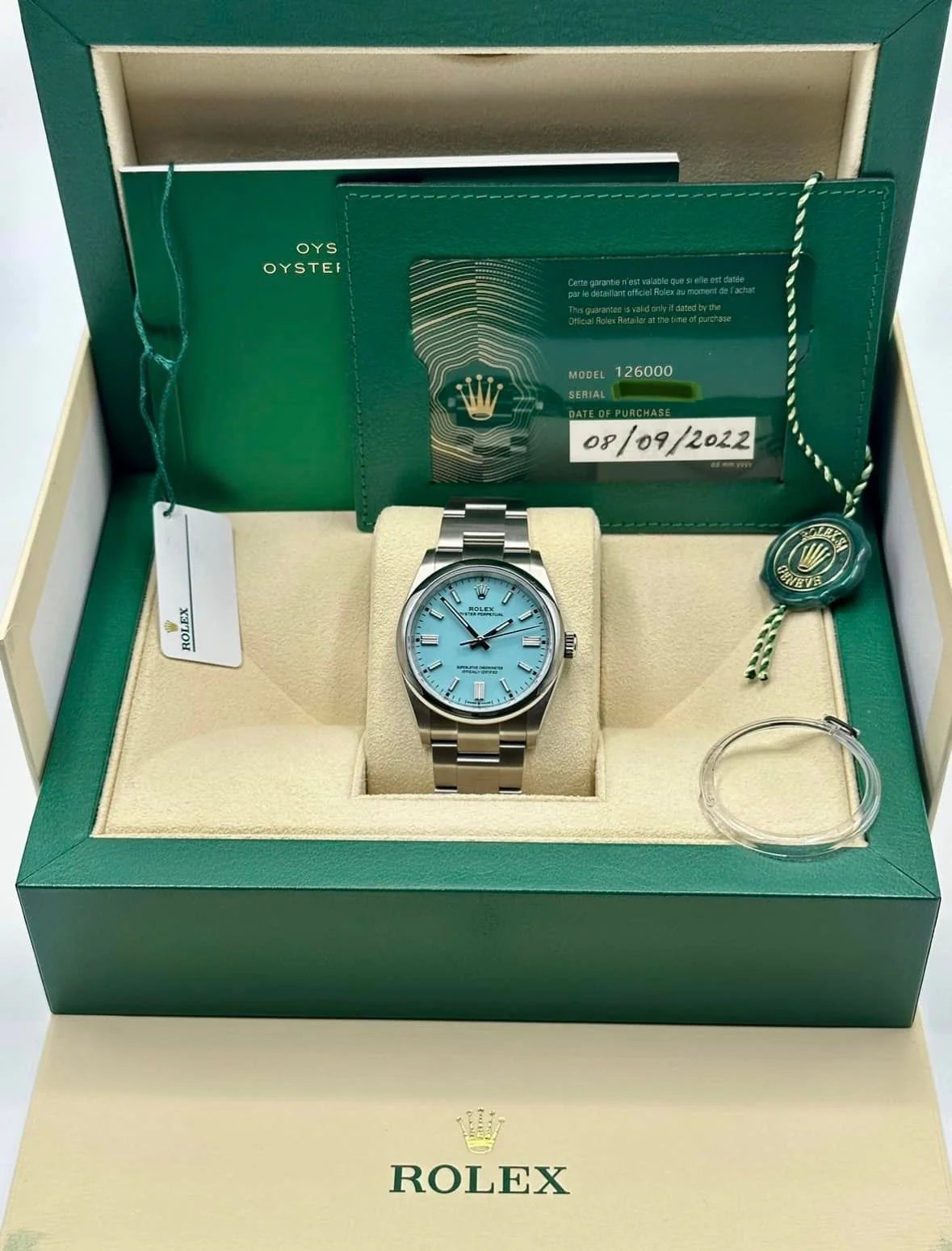 2022 Rolex Oyster Perpetual 36mm 126000 Tiffany Blue Dial