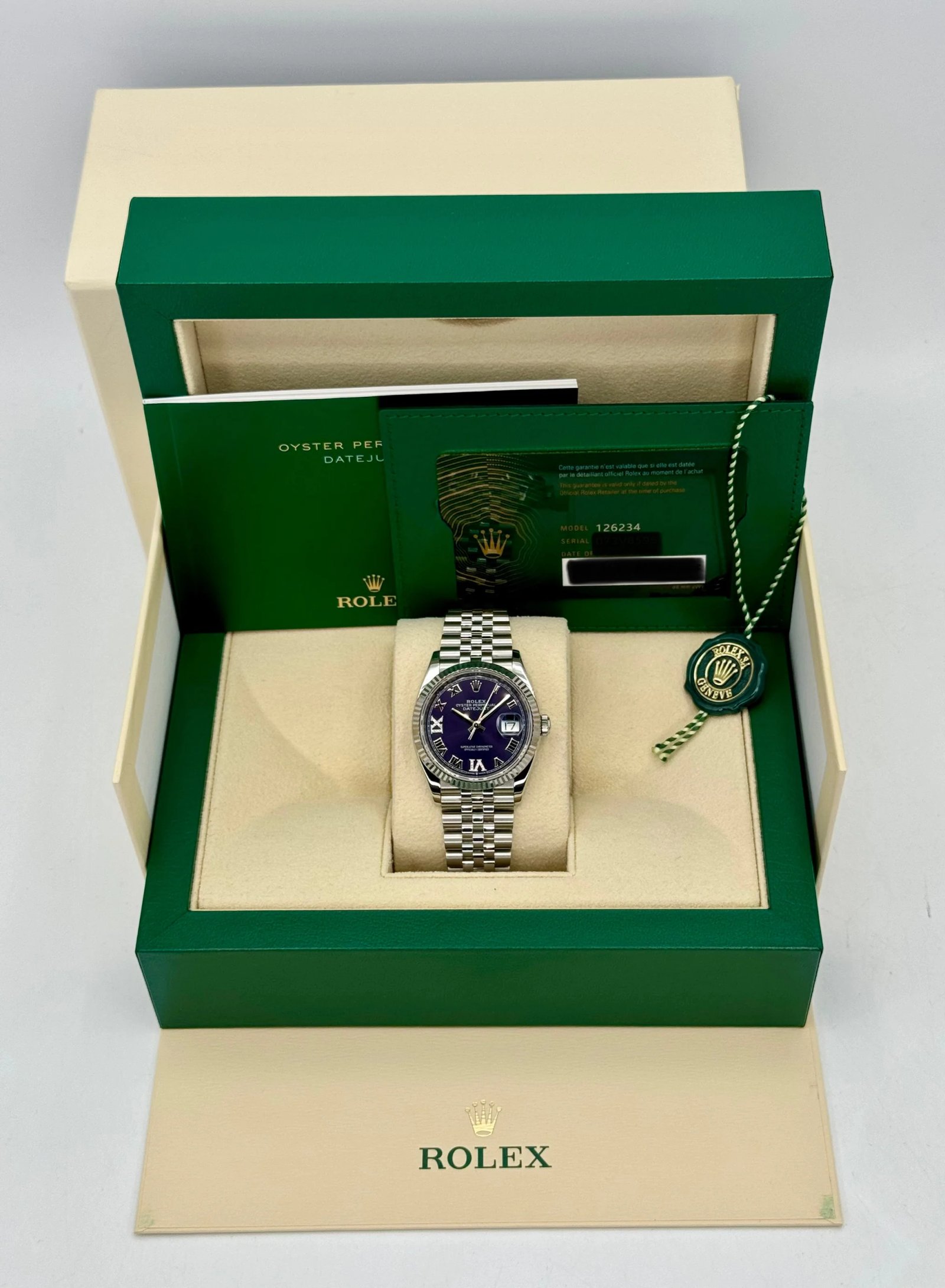 2023 Rolex Datejust 36mm 126234 Stainless Steel Jubilee Purple Dial