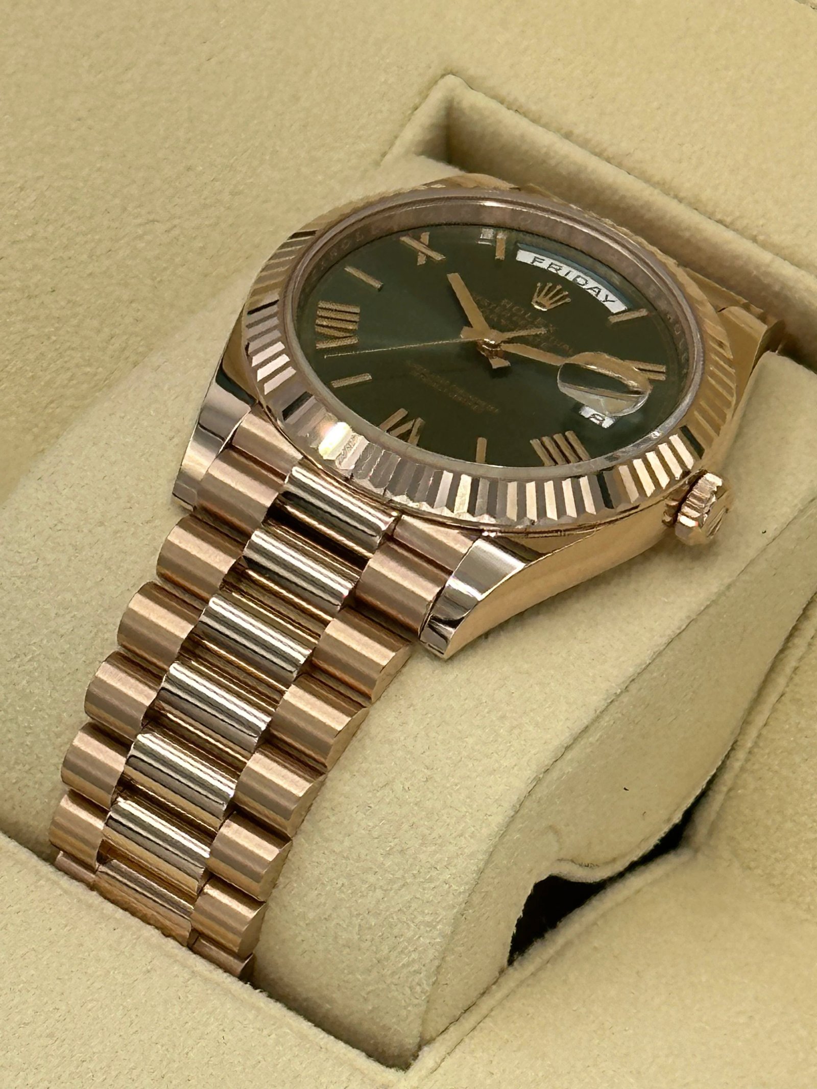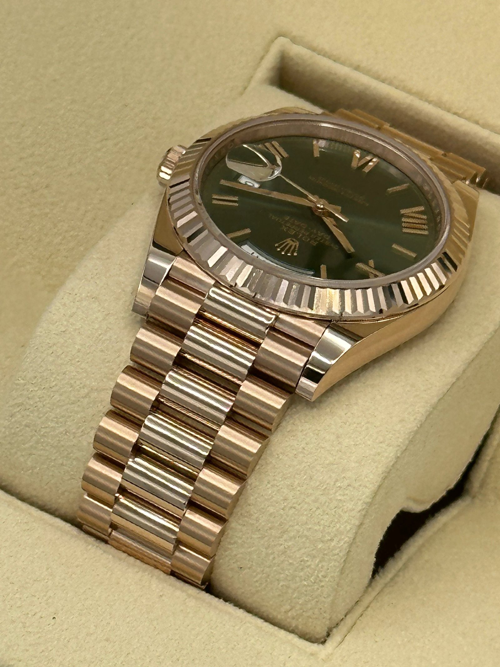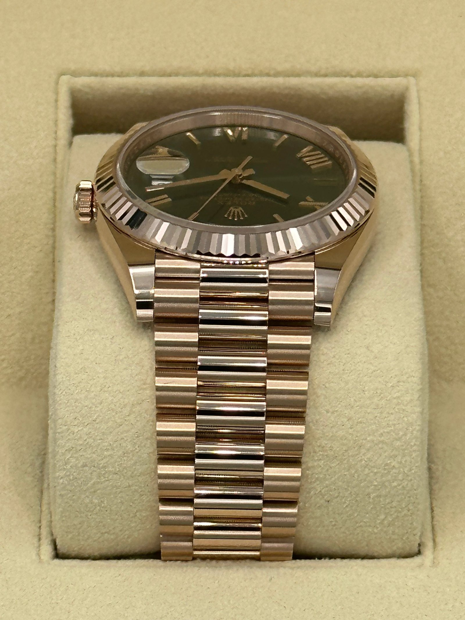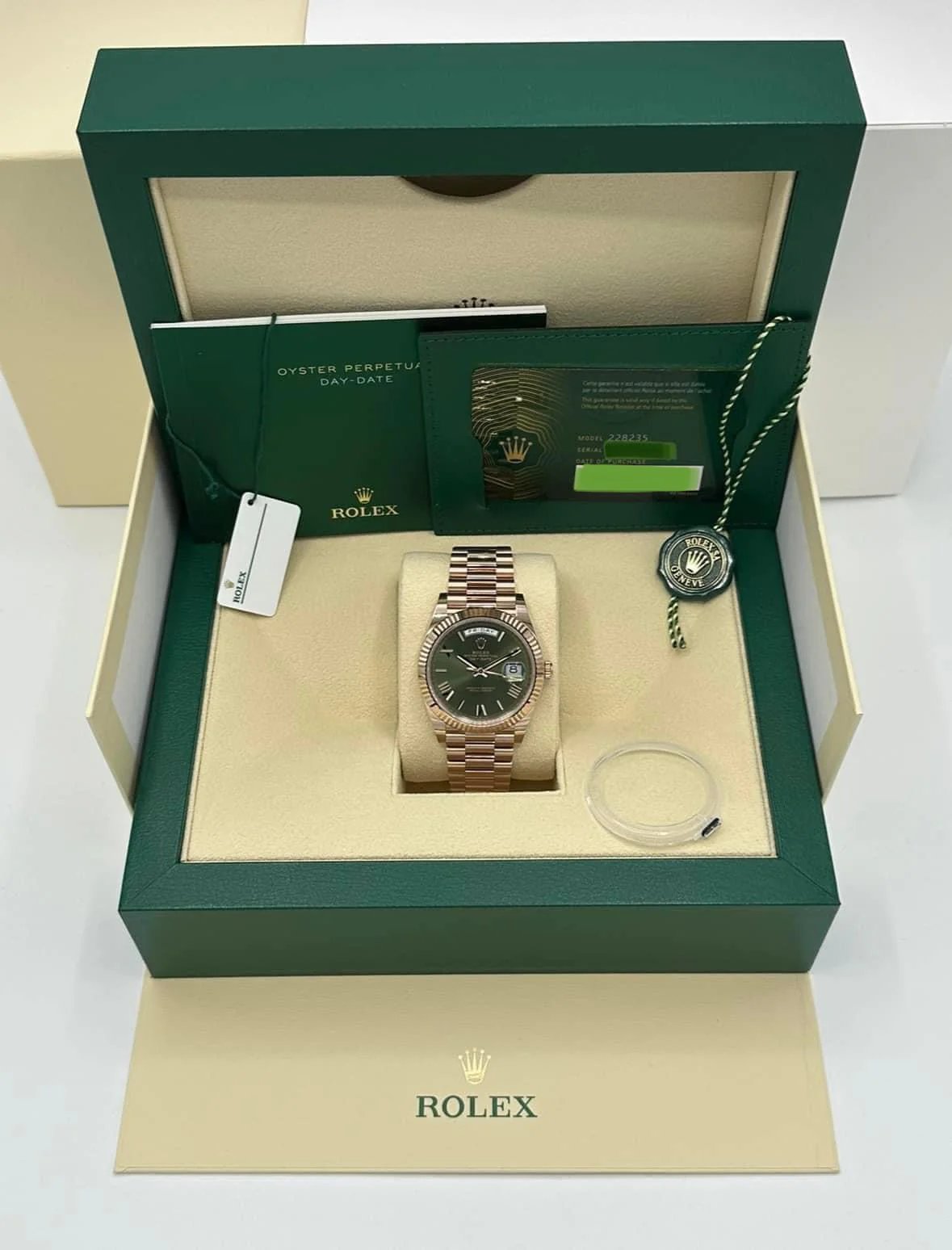 NEW 2023 Rolex Day-Date 40mm 228235 Presidential Rose Gold Olive Dial